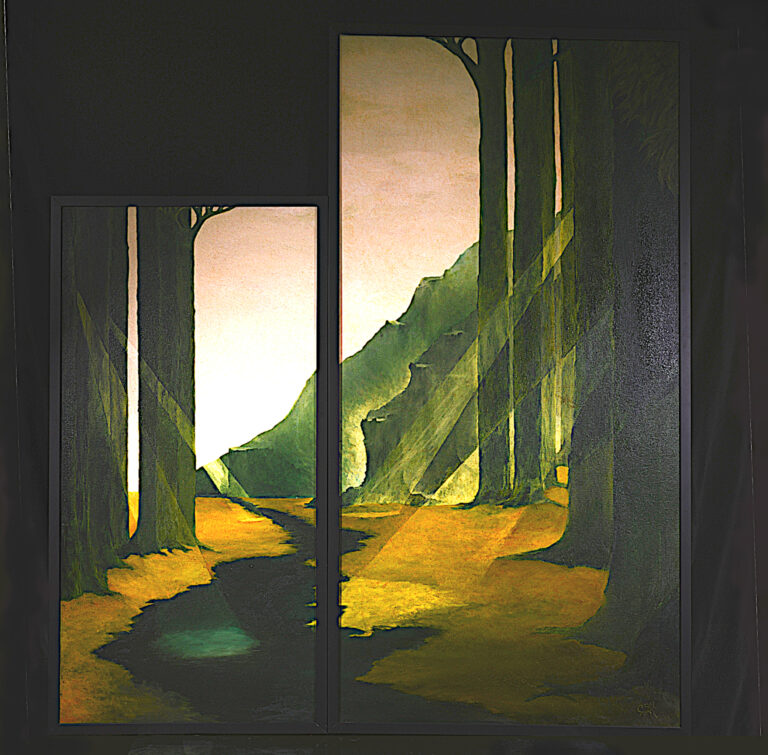 This is a 2 canvas work.  Jan Van Eyck varnishing technique with amber glaze.