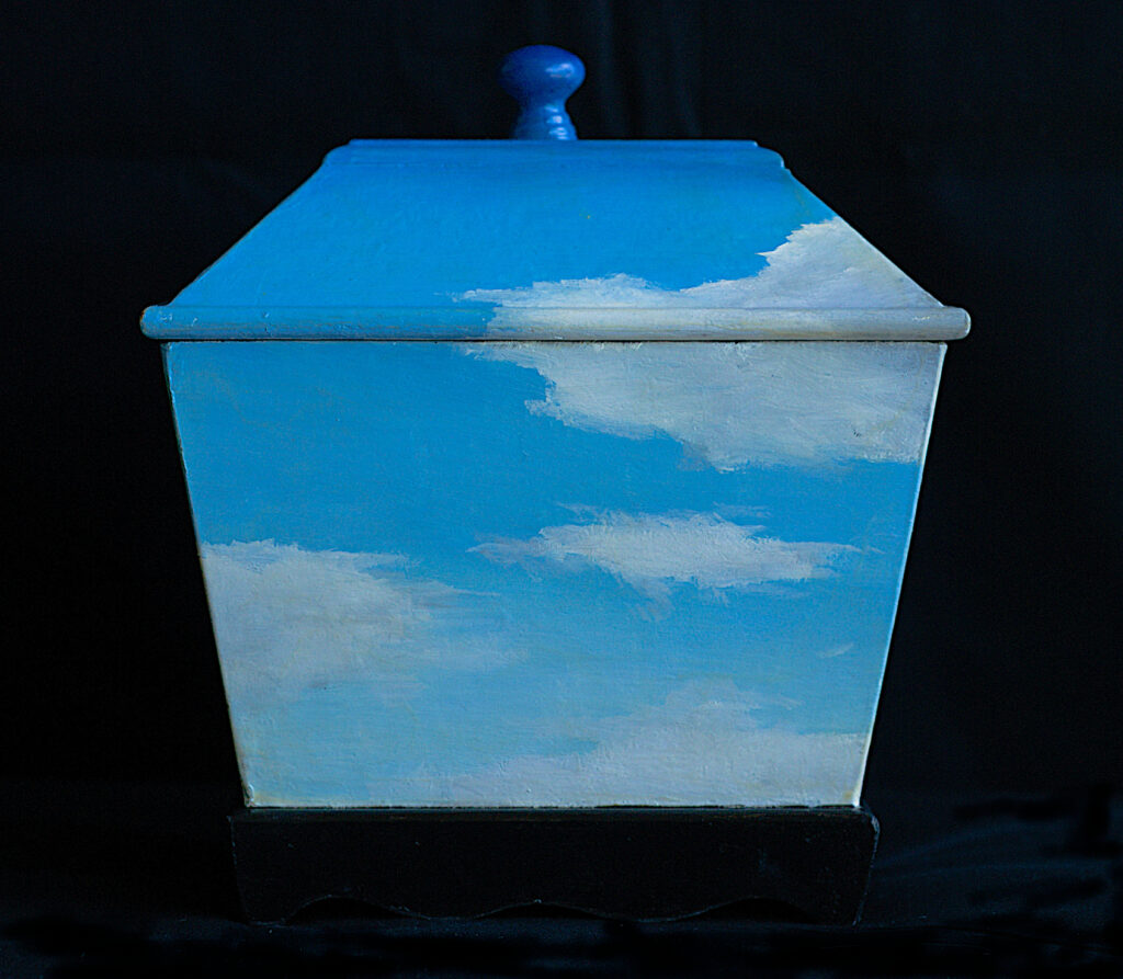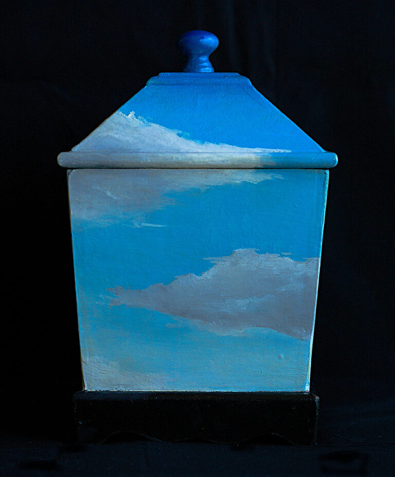 The Sky Box The Sky BoxHand oil painted box with black base7.5″ H x 7″ W x 5″ DA small jewel. Please contact for pricing and details, or commission requests.